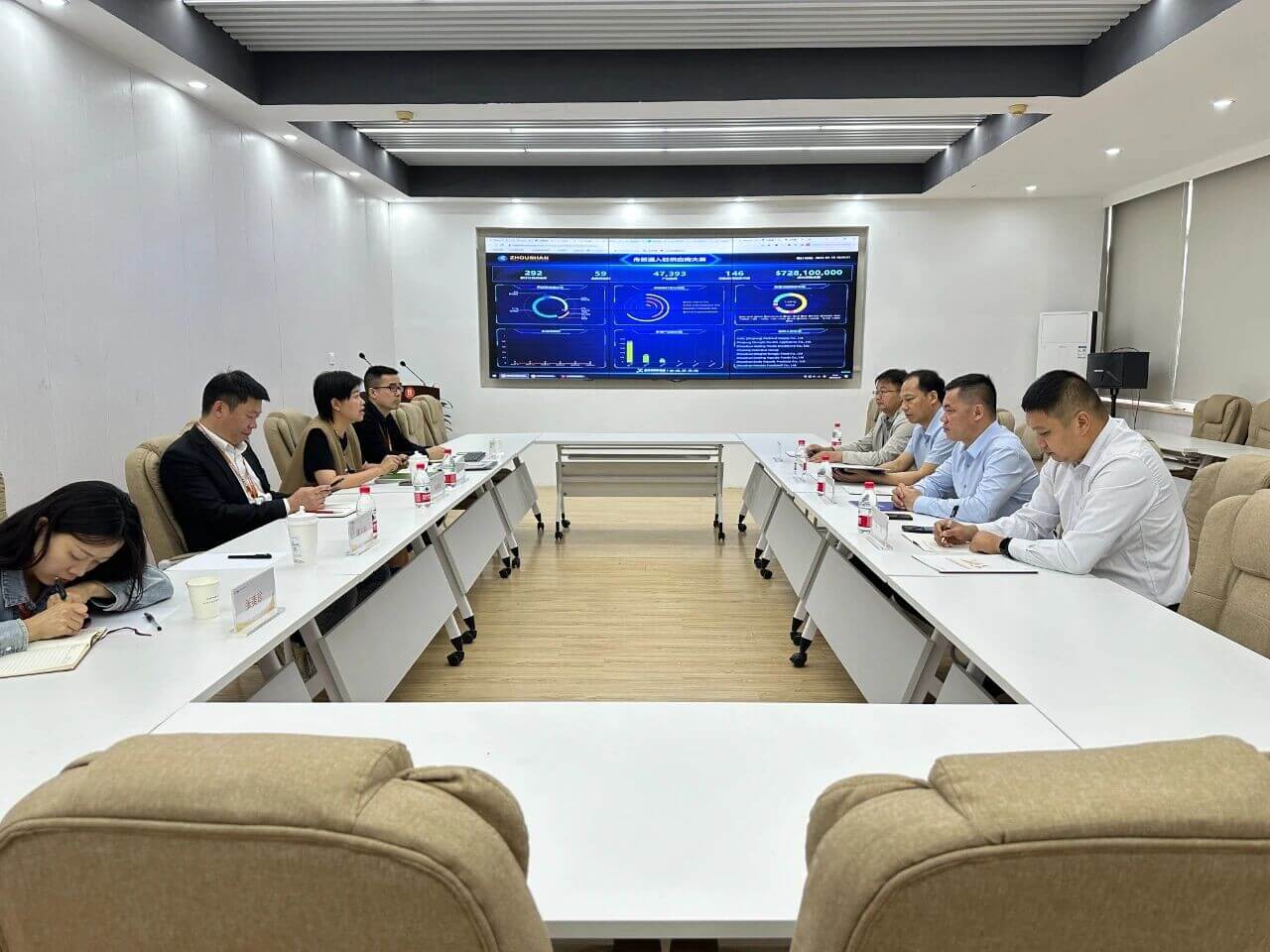 会上,甬商公共服务平台副主任邵亮介绍了甬商平台的基本情况以及政府项目承接、招商引资工作等,双方就崇左市江州区的产业发展和招商引资政策等进行了深入交流和探讨。
