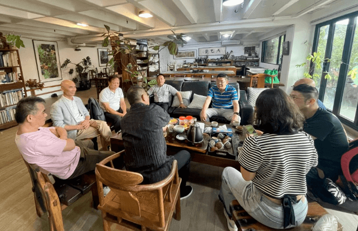 甬商公共服务平台曹云等还拜访了香港美术家协会主席林天行,参观了林天行工作室和“明画廊”,并与林天行主席就甬港两地的人文艺术合作进行了交流。