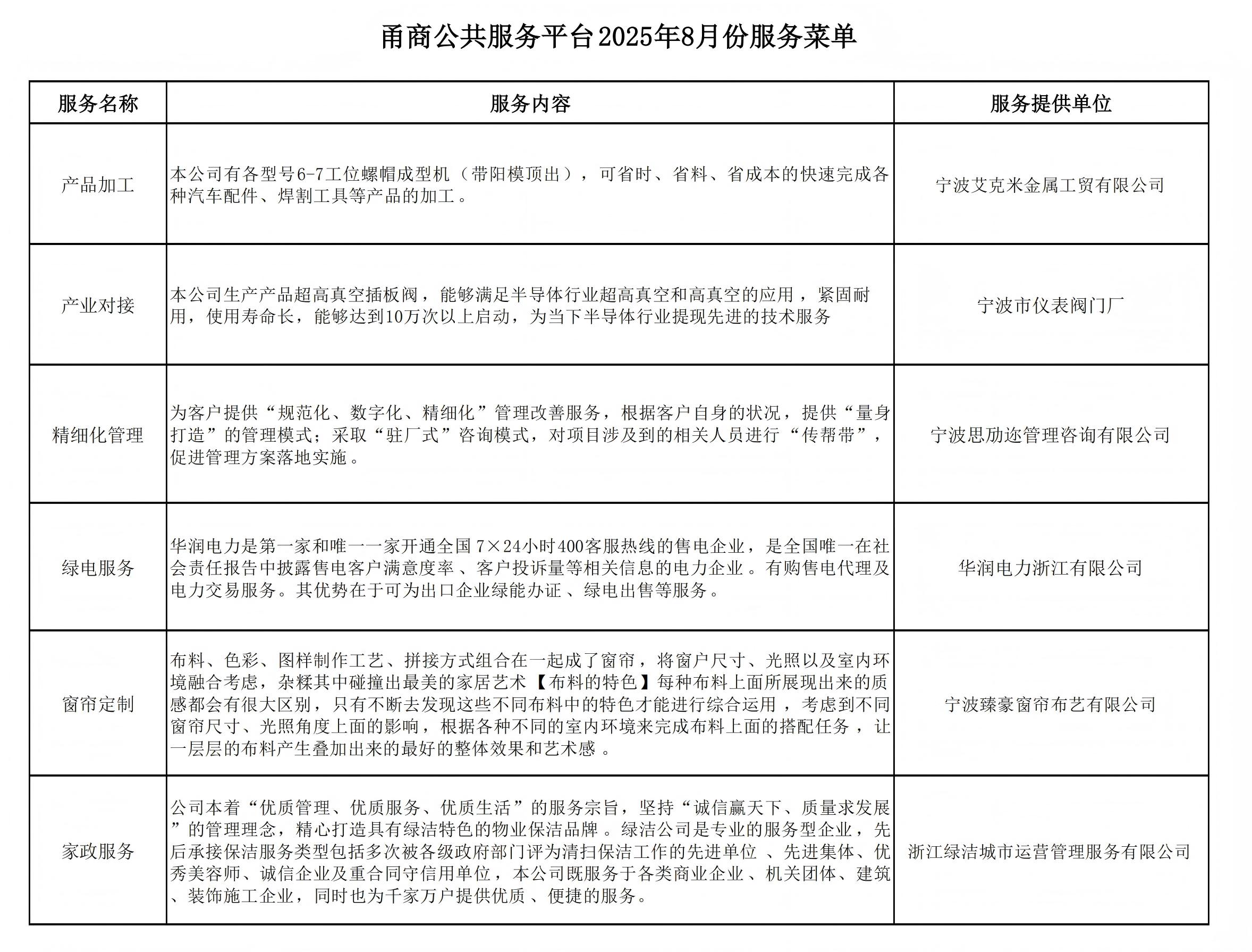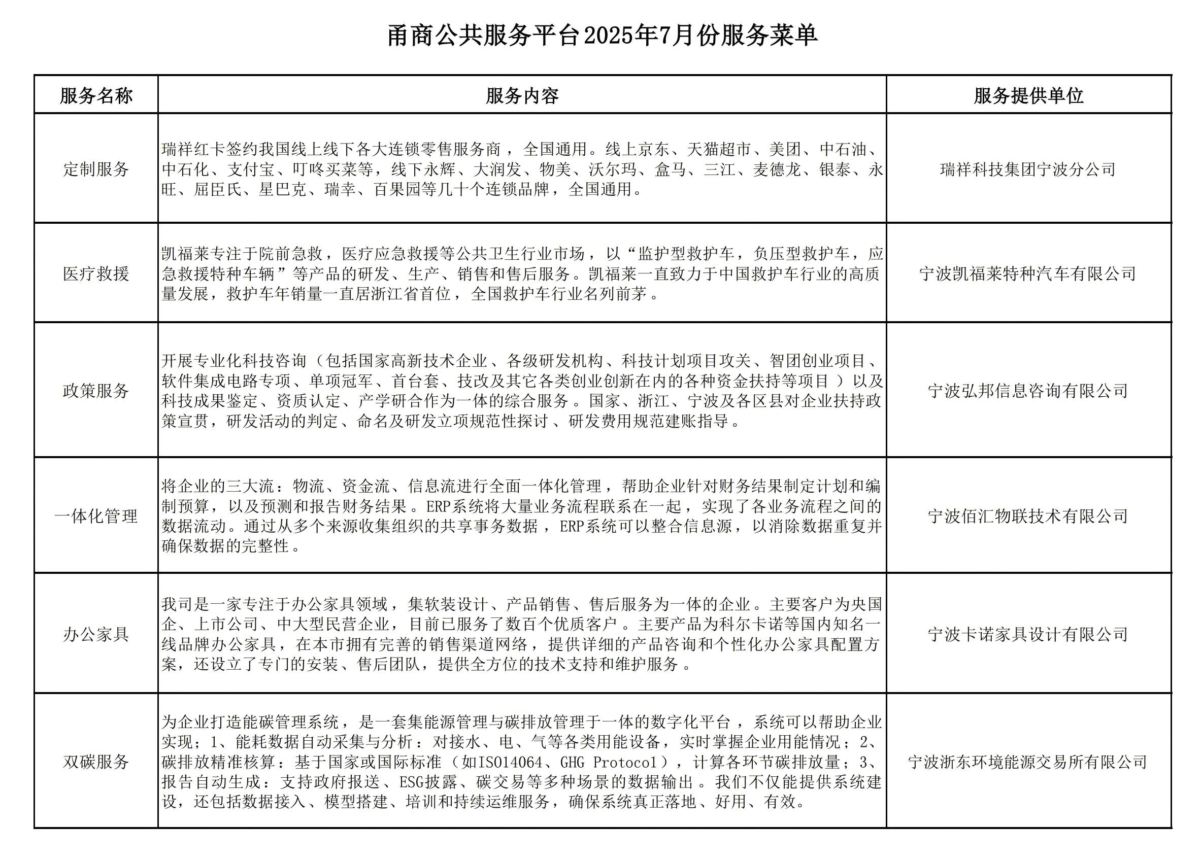月度服务菜单