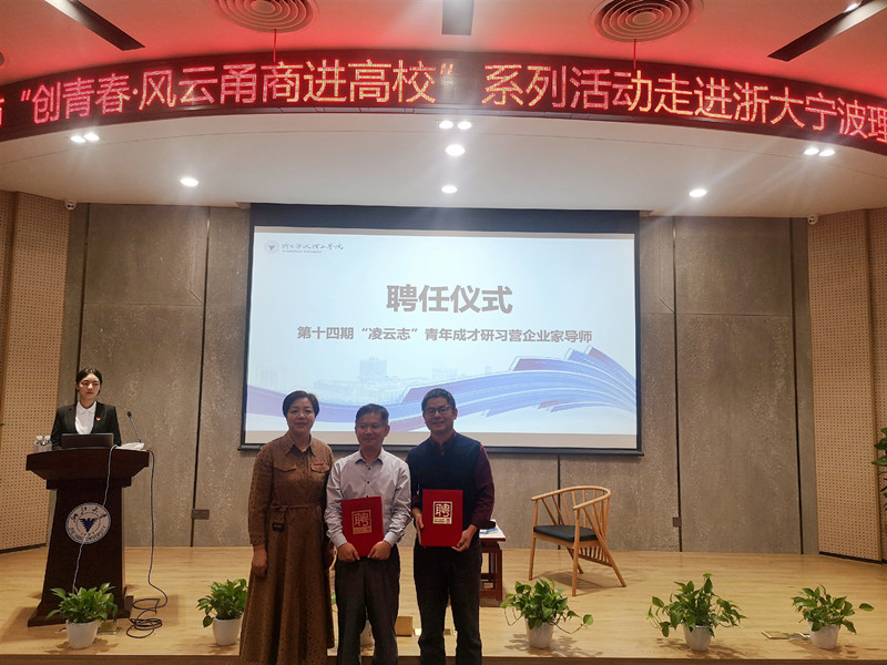 现场还举行了浙大宁波理工学院第十四期“凌云志”青年成才研习营企业家导师的受聘仪式。根据确定的企业家导师团名单,将制定为期一年的培养方案,为大学生们后期创业提供平台和机会。