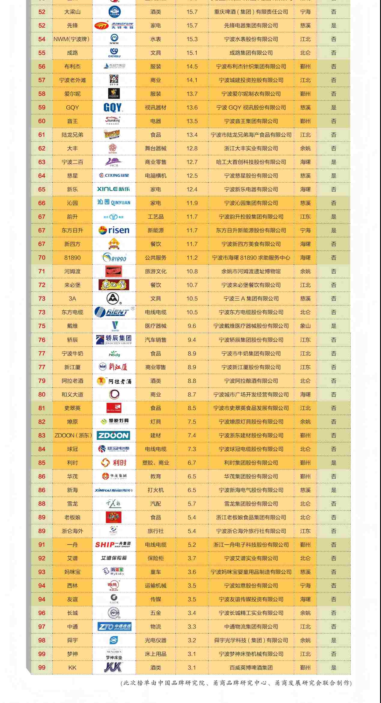 发布时间:2025-08-05 点击量:832025宁波品牌百强榜
